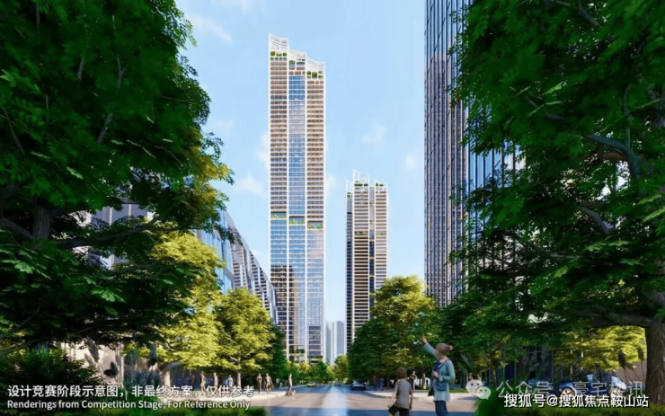 建筑规划:5栋超高层塔楼(4栋住宅+1栋公寓),高度分别为150米、200米、200米、240米(住宅)及250米(公寓)