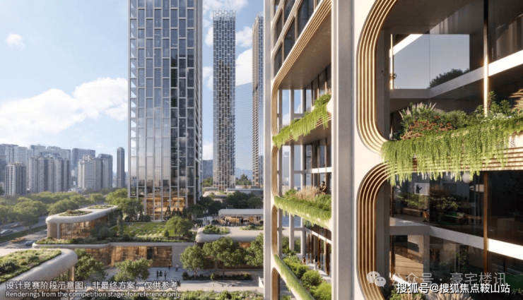 后海沄玺花园旨在打造城市次地标,设计灵感来自植物细胞的有机形态。项目由五座150-250米塔楼组成,采用错落布局和平面退台设计,以优化深圳湾景观视野。