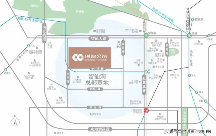 创智公馆所在片区享有总面积约57k㎡的西丽湖国际科教城,构筑“一环、一带、三组团、五片区”的空间功能布局,集聚国际一流创新资源、推动湾区协同发展,互联网、人工智能、新一代信息技术、生命健康等战略性新兴产业总部将向此聚集。
