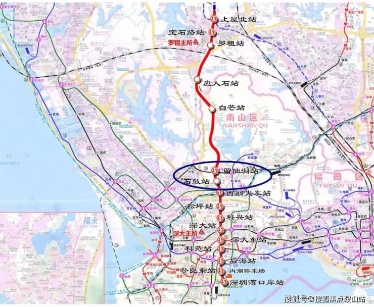 13号线从深圳湾口岸出发向北经过后海、科技园、留仙洞总部基地、到宝安石岩