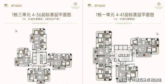户型对比前一期紫荆府的差异就是没有追求一梯一户的布局,电梯厅采用传统布局,但是保留了每户入户前的独立公共空间。这样的好处就是增加了得房率又兼顾了私密性。