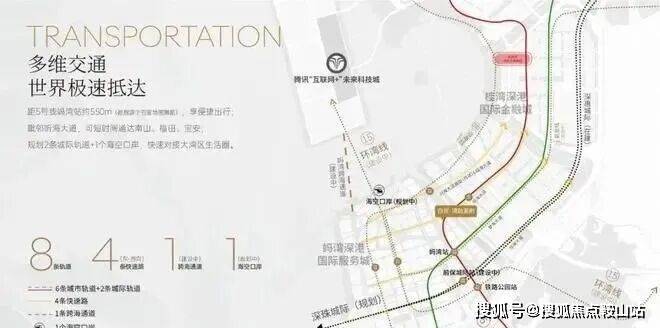 湾啟紫荆府距离5号地铁线“妈湾站”约550米,步行5分钟即可到达,1站到铁路公园站可换乘15号地铁线,深惠城际“前保站”距离约1公里,便捷通行,毗邻听海大道,快速通达南山,福田,宝安。