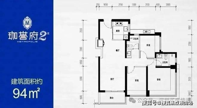 94㎡的3房2厅2卫,设计的是竖厅格局,动静分区,客厅3.4米开间,S墙设计预留冰箱卡槽位,3个卧室分别为3.7/2.7/2.35米的宽度,主卧270°环幕飘窗视野,U型厨房,得房率:77.54%(不含赠送),阳台进深1.6米,西南朝向。