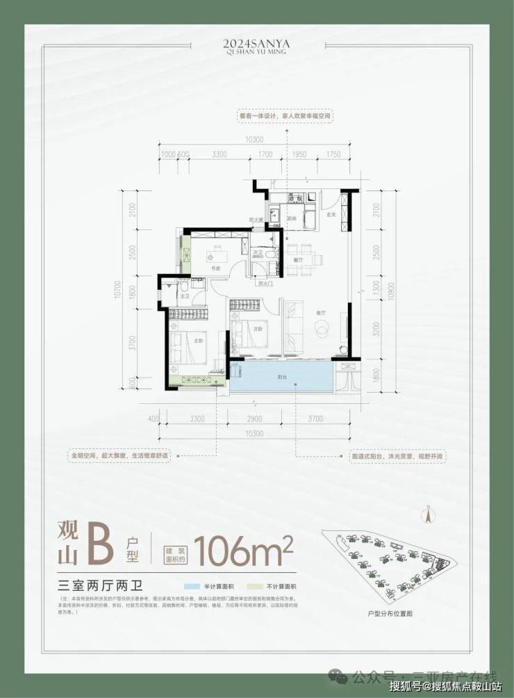 📍观山 B户型-建面约106㎡ 三室两厅两卫