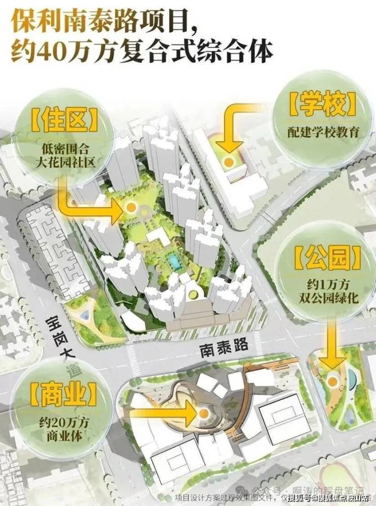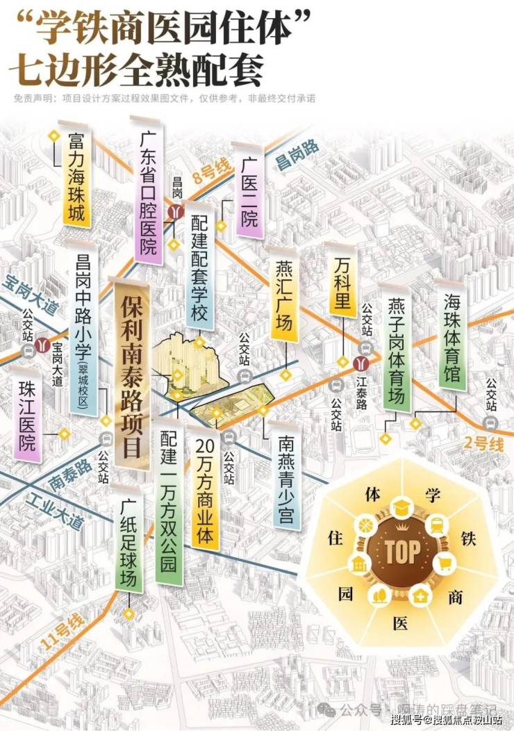 这里反手就是一个38万平综合社区,从配套来看,保利南泰路项目所有牌面筹码都已经摊开——一个“学铁商医园体住”七边形全熟配套圈。
