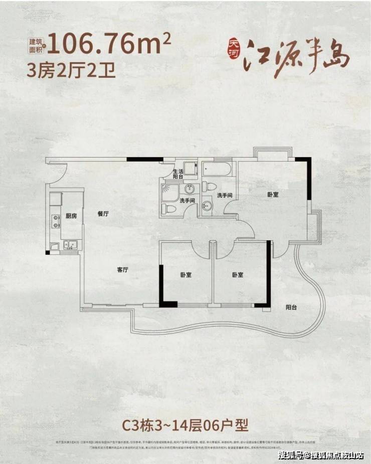 :动静分区设计,提升生活效率;双阳台布局满足储物、晾晒和观景需求;双卫生间配置避免生活尴尬。