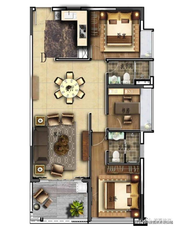 楼王产品:约130-138㎡ 4房2厅2卫(纯板楼/南北通透/两梯两户/温泉入户)