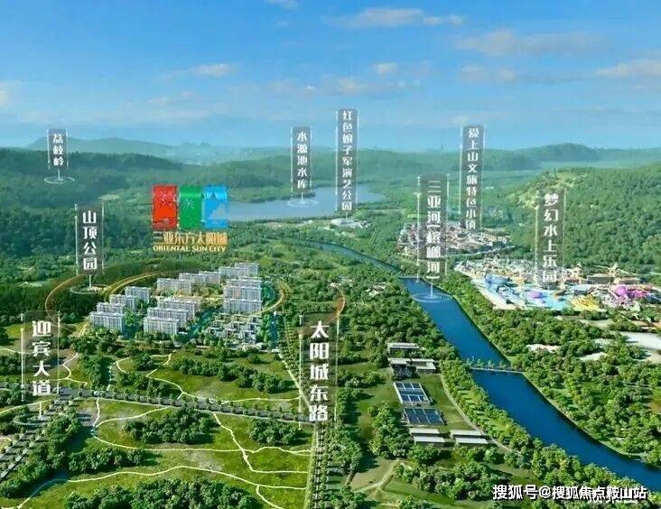 三亚·东方太阳城,西卧山顶公园,东拥三亚河(槟榔河),近享水源池水库、荔枝岭生态景观,面朝三亚主城区、三亚湾等,以山河为靠,以繁华为景,打造天赋上境栖居地。