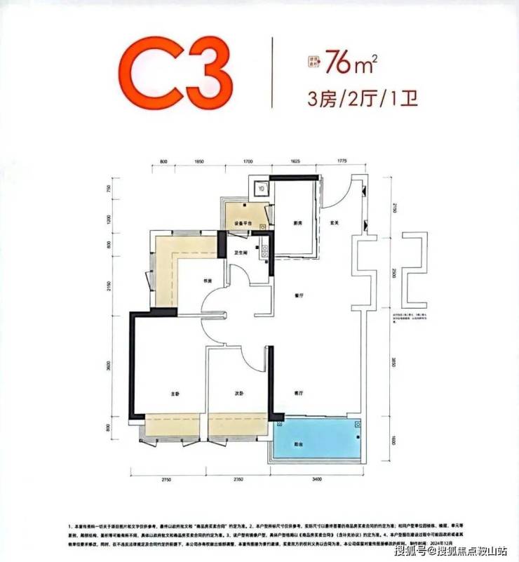 76㎡的3房2厅1卫: