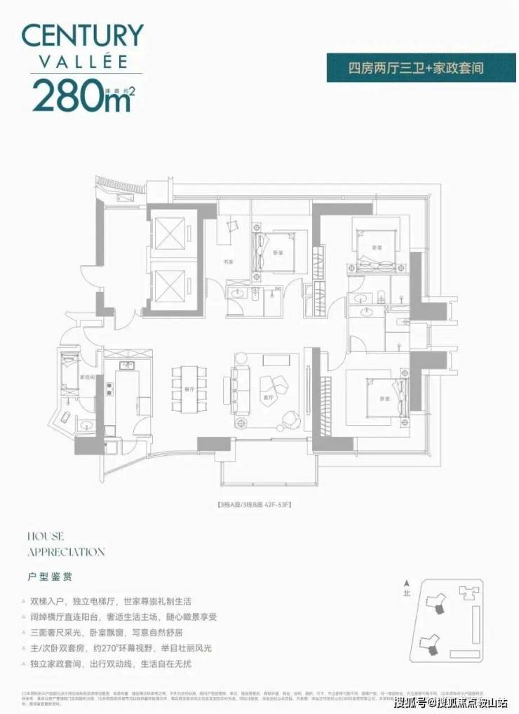 深业世纪山谷前两次都是公寓,现在住宅首发!还是定位相当高端的纯大平层,8梯3户,240㎡/280㎡配备两个独立电梯,380㎡双梯设计,实在任性!