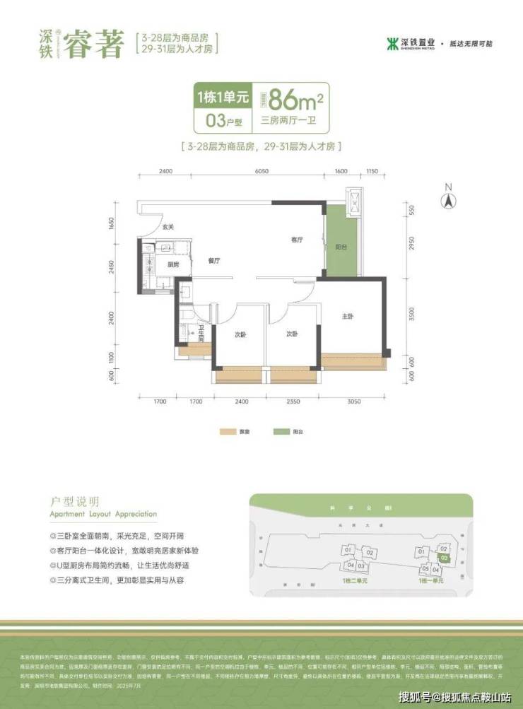 产品品质方面,项目立面采用米白色漆面搭配大面宽玻璃窗,客餐厅、过道及卧室墙面选用成本更高的竹木纤维板,兼具环保与防潮性能;装修甄选马可波罗瓷砖、卡萨帝厨房三件套、TOTO智能马桶等品牌,实现“好设计、好材料、好建造”的深铁“六好六化”标准。2026年2月,项目32套可售人才房选房半小时即售罄,申购比高达1:11,延续了深铁TOD项目的市场热度-5-7。深铁睿著广场项目维保及提升工程已于2026年2月启动招标,项目后续品质维护有保障-9。