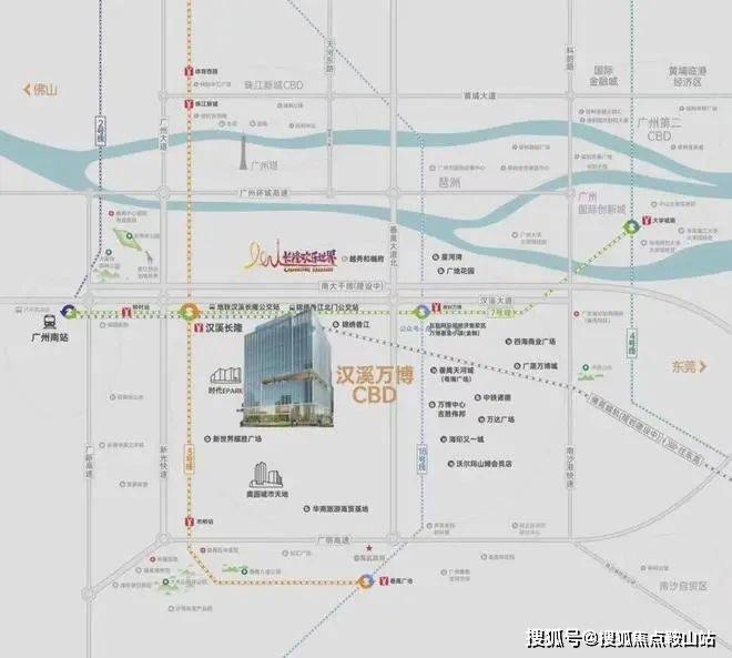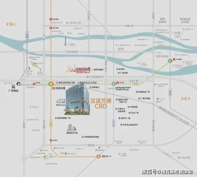 项目地址:位于番禺区汉溪大道、番禺大道双城市主干道之上,地铁3&7号线汉溪长隆站、18号线南村万博站(预计2022年通车)上盖,雄踞汉溪长隆-万博CBD双黄金商圈。