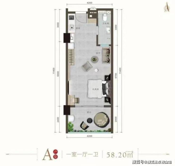 在售产品:舒适开间、奢阔两房(层高3.6米)