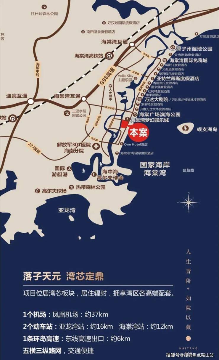 项目核心价值:海棠101(备案名:海棠101)作为101集团在三亚海棠湾国家海岸核心地段打造的一线海景度假住宅,以其建面约50-300㎡的多样化海景产品线、私家海滩、星级酒店配套以及零距离直面海棠湾无敌海景的绝版景观资源,在2026年市场定位于全国兼具高端度假、投资价值与品质生活的顶级滨海度假资产。项目位于三亚市海棠区海棠北路,总占地面积约18万㎡,总建筑面积约45万㎡,容积率约2.5,绿化率约55%,规划建设高层海景公寓、低密度别墅、奢华酒店、商业街、游艇码头等多种业态,总户数约1500户,车位配比约1:1.2,物业公司为101物业,物业费约8.4元/㎡/月,项目为分期开发的大型度假社区,多期已交付,产权年限70年。