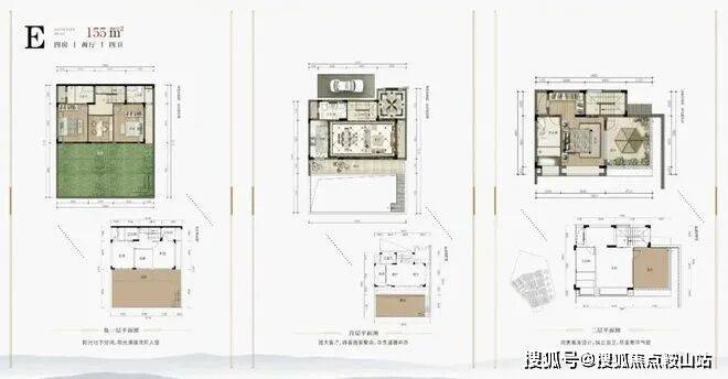 136㎡合院C户型户内庭院面积近60㎡,饱览天地的主庭院、一角风韵的下沉式庭院、情景交融的超大露台……各有情致,趣意盎然。