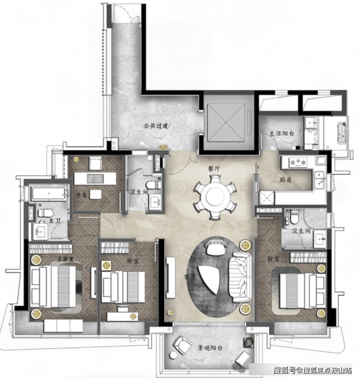 【洋房户型】140㎡-270㎡四房双主套