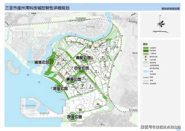 公园配套:通海公园、滨海公园、南繁公园、滨河公园、观海公园;