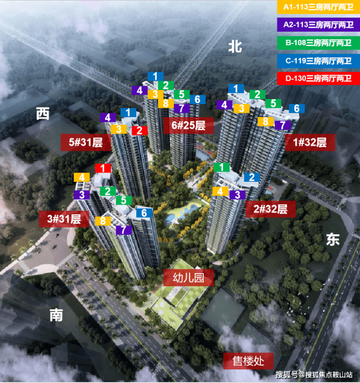 楼层总高:1#楼32层,2#楼32层,3#楼31层,5#楼31层,6#楼25层;