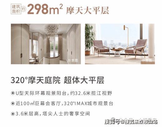 户型设计:298-410-708㎡全幕墙大平层,3.6米层高(远超市场2.8米标准),120㎡巨幕会客厅,38.6米U型环幕阳台(中山最长),320°全景视野揽江、城、园三景。