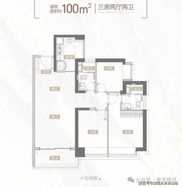 【户型鉴赏】建面约100㎡3房2卫