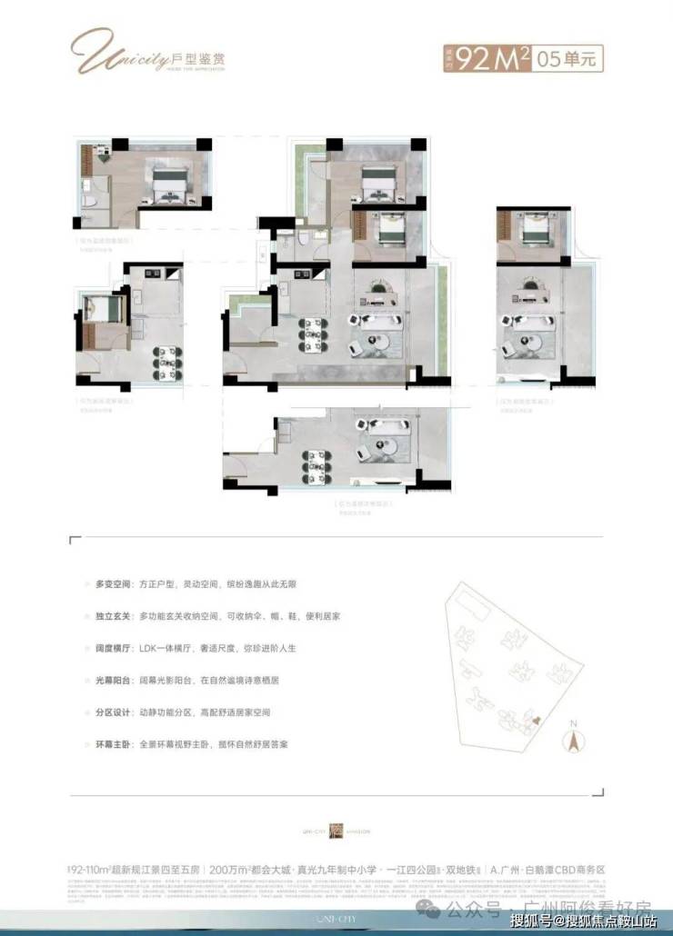 2、超高绿化与生态社区,绿化率达47%,连通花地河绿道公园、榕诚公园等四大公园,内部打造六大森林主题园林,营造低密宜居环境。