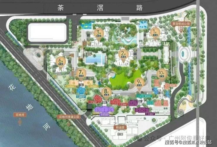 1、稀缺江景资源,距花地河仅30米,头排南向无遮挡瞰河,部分户型享IMAX级江景视野(如7栋138-165㎡、8栋125-141㎡江景大宅)。