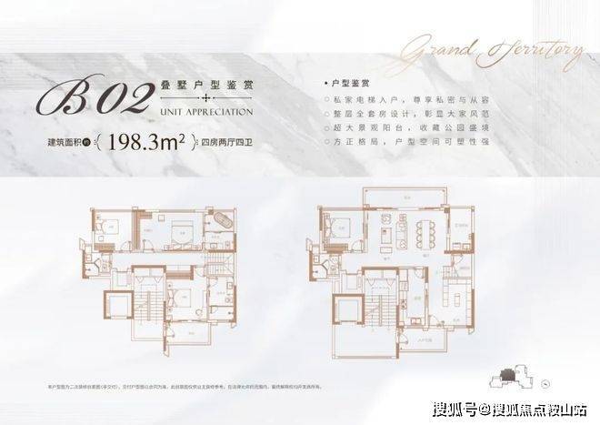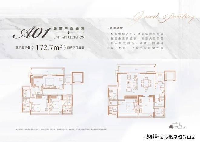 设计亮点:私家电梯入户、全屋套房布局、6米宽景观阳台,实现“有天有地有花园”的居住体验。