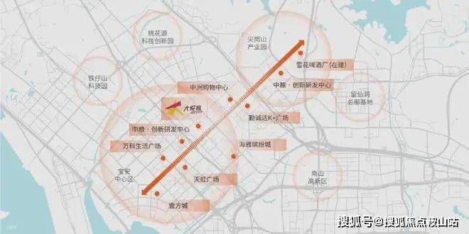 商圈汇聚:大悦城(在建)、壹方城、海雅缤纷城、中洲πmall、万达广场等。