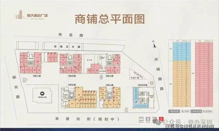 恒大都会广场:超黄金开间·70年产权·67席临街旺铺,在售建面约32-267㎡鎏金临街旺铺,单价7-9万元/平,共67套全开放式、临街一层铺,位于1栋、2栋、3栋的首层