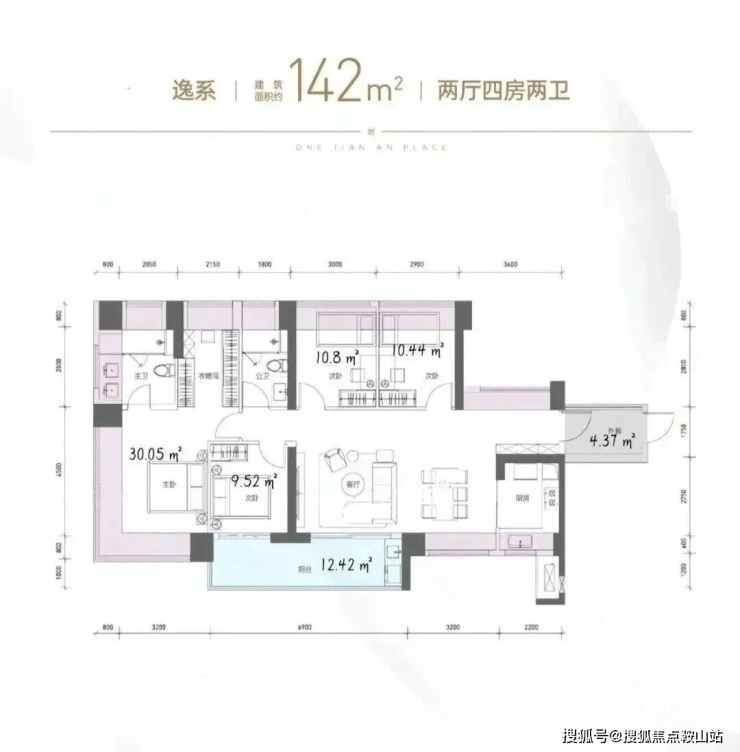 这是市场上非常经典的四房户型,南北通,没有室内走廊浪费空间,每个房间都不小,实用率(加上凸窗和阳台)高,塘主测算了下是96.32%,如果算上室外给业主专用的入户走廊,是100%。