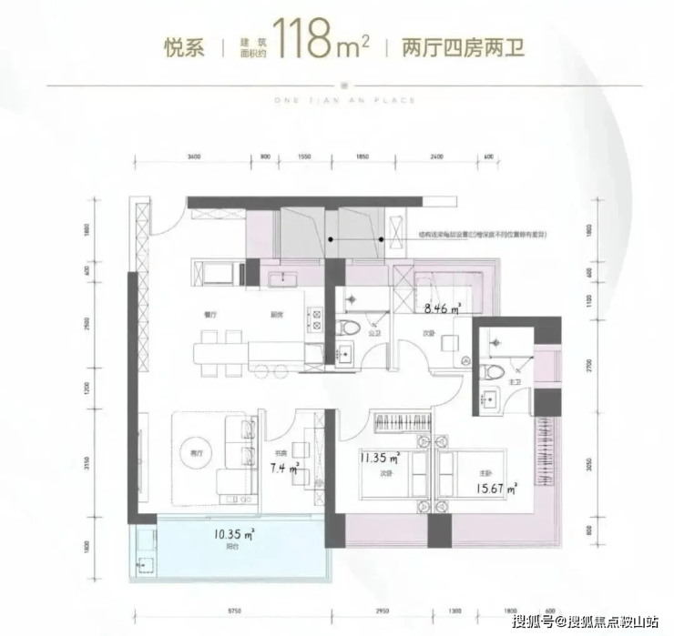 这个户型比较适合坂田的刚需改善需求,这个户型如果用市场上宣传的得房率(加上凸窗和阳台,得房率为100%。在配置4梯5户超低梯户比的情况下,这种得房率难为可贵。
