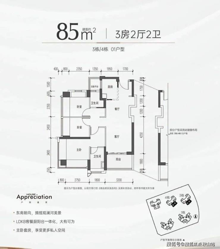 85㎡ 三房两卫(东南河景)
