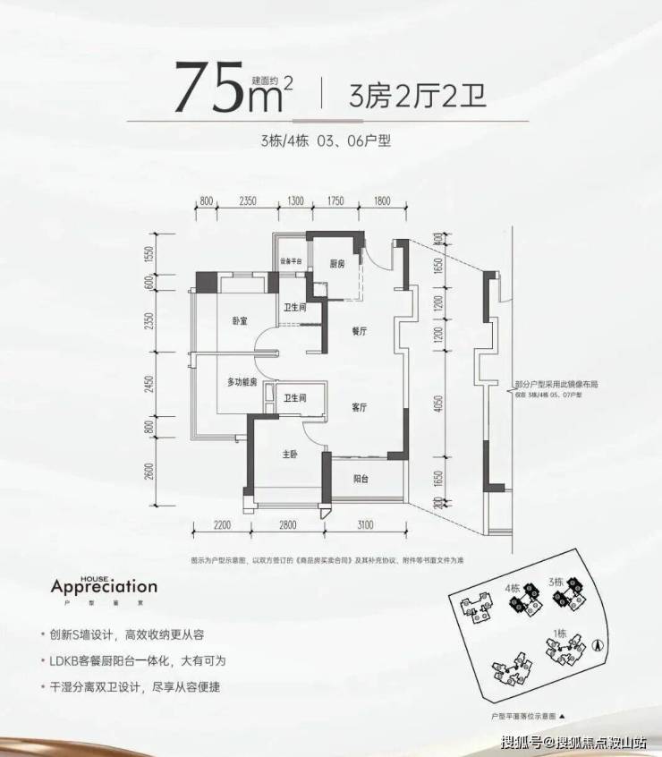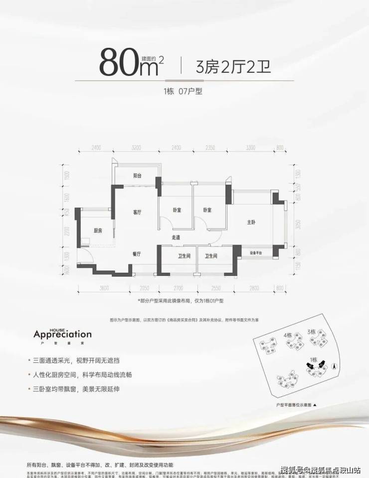 【户型面积】约75-85㎡3房2卫,约94-105㎡4房2卫