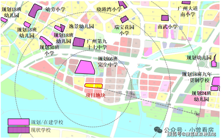 1千米范围内有广州第九十七中学,1.5千米范围内有南武小学等,距离地块