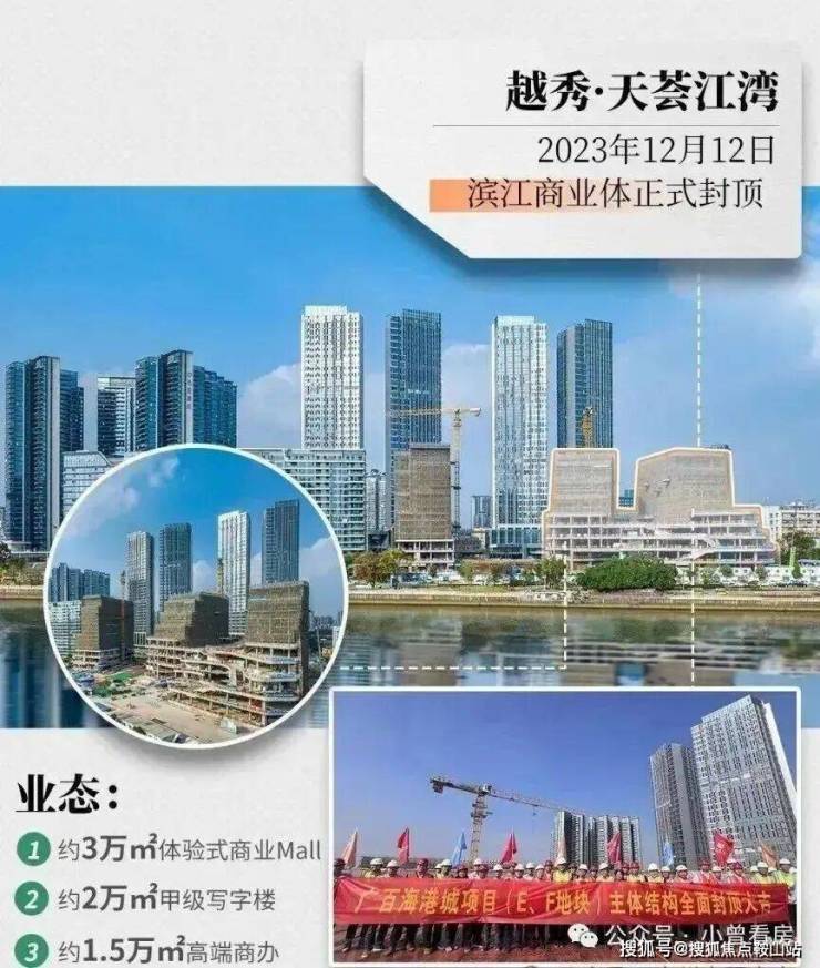 旁边的广百海港城已在2023年12月12日正式封顶,预计在今年底正式开业,它是广州首个大型的滨江海港城,集商务办公、休闲购物、酒店于一体,计划引进奢侈品牌旗舰店、生态写字楼、五星级酒店等业态。家门口解决吃喝玩乐,给项目加分不少。