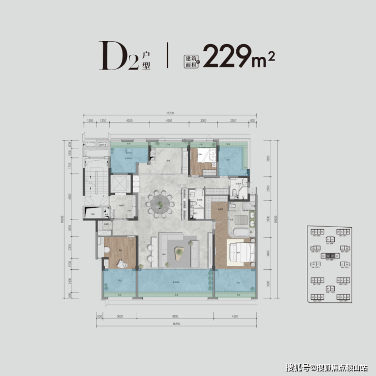 吉祥16号先天禀赋完美,地块方正有利于对称布局,容积率2.5、绿地率40%,规划13栋15-18层纯板楼,共649户,均为一梯一户或两梯两户,面积段为约111—229㎡大平层,共有6种户型。