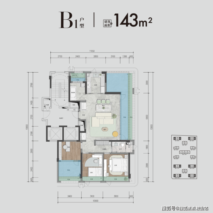 项目将6种户型均做了样板间,这里小易带大家看看印象比较深刻的约143㎡B1户型和约199㎡的D1户型。
