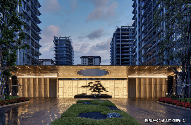 其一是秩序感,豪门望族的家族基因中从不缺乏中式的礼序。这体现在项目的两轴五进规制和中轴对称设计。大门礼制是鉴别一个豪宅“塔尖指数”的目测工具,项目主入口长九九八十一米,臻选天然透光石材,搭配名贵罗汉松,迎接归家风雅礼序。除了主入口,延续星级酒店品味的单元入口也是礼仪的象征。