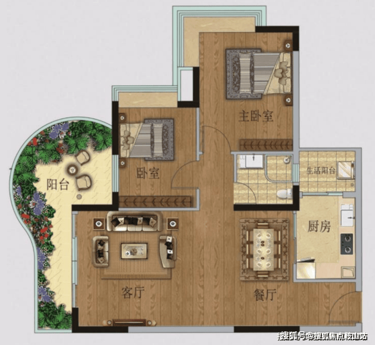 82㎡2 房 1 卫(TOP03 户型):南向园林景观,270° 景观阳台 + 单边采光,采光通风极佳;“LDK” 一体化客餐厅增强家人互动,2+1 灵活空间可作阳光书房,三面朝南设计尽享园林景致。