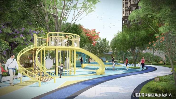 为树阵广场、logo景墙、亲子活动、儿童活动、青年健身、长者活动。为业主提供一处家庭娱乐场所,内部配置了全年龄化的娱乐设施,且园林内的健康环形跑道连接各个节点,穿梭于绿色的海洋中,让业主们在这片空间欢快的玩耍,嬉戏。