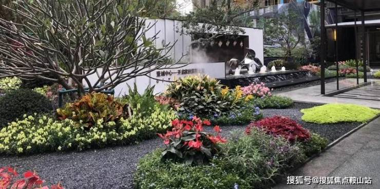 为主入口广场、迎宾轴线、水景雕塑、景观凉亭、休闲草坪。入口广场前的地面logo以及门面的设计能够凸显出园林建筑的风格;以及在空间上采用人车分流的方式,有效地保证业主的出行安全。
