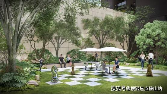 为趣味汀步、休闲草坪、软装座椅、特色铺装、棋子雕塑。以棋盘的样式打造出的林下棋艺空间,为长者增添了一处娱乐的空间。