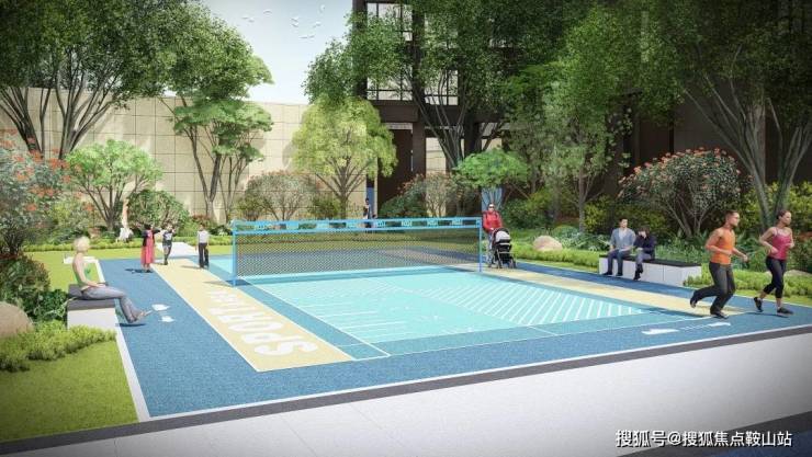 为羽毛球场、多功能运动构筑、热身场地、环跑道;多项运动设施的融合,打造出多姿多彩的运动空间,使得园林内充满了社区氛围。