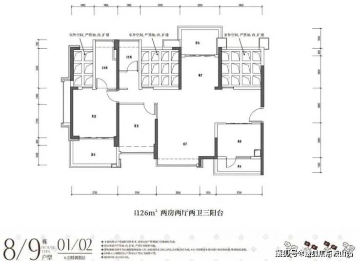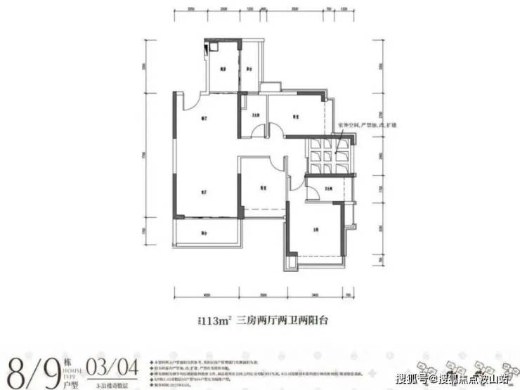 113平3房2卫(客厅开间4米)