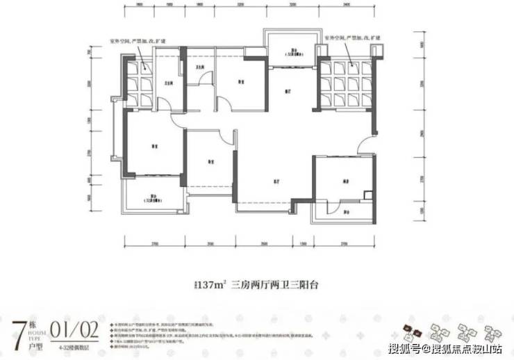 136平3房2卫(客厅开间4.8米)