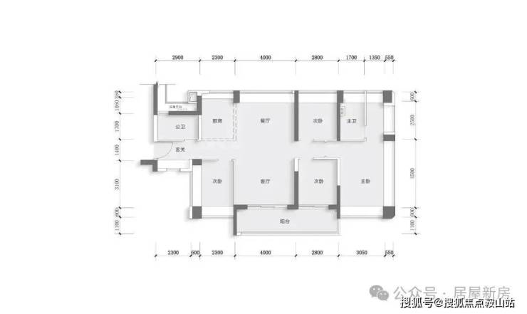 ●客厅开间3.6米,这比周边97平的开间还要大,得房率超过了90%