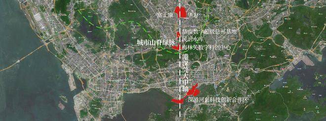 深圳发展中轴,华南数字超级总部基地、星河world总部基地、坂雪岗科技城、北站产融结合示范区、梅彩新一代信息科技,连成深圳中轴含金量置顶的价值金线。