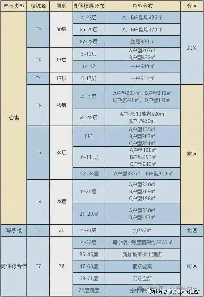 北区分为:T1写字楼、T2、T3、T4公寓。