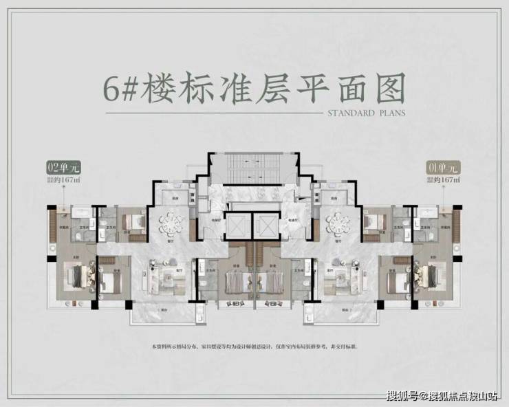 以人居的纯粹表达,项目在整体楼栋上,以北高南低、横向平行的对称式美学,保证每一户的南北开阔度,让居者的景观视野更宽广;同时打造两梯两户,以崇的归家仪式感,给生活至臻的礼遇。