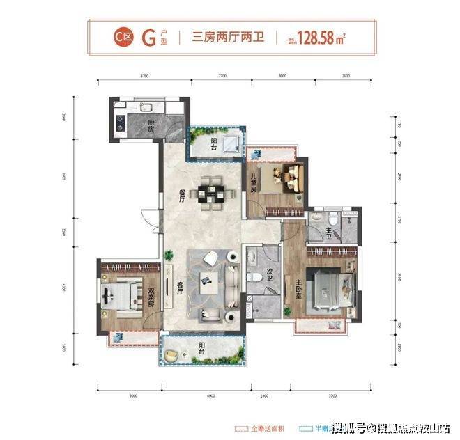 户型面积:在售建面约 101-143㎡,有三居和四居等多种户型。